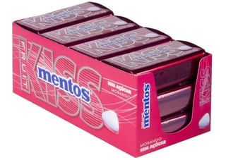 BALA MENTOS KISS MORANGO LATA | DISPLAY COM 12 UNIDADES DE 35GR